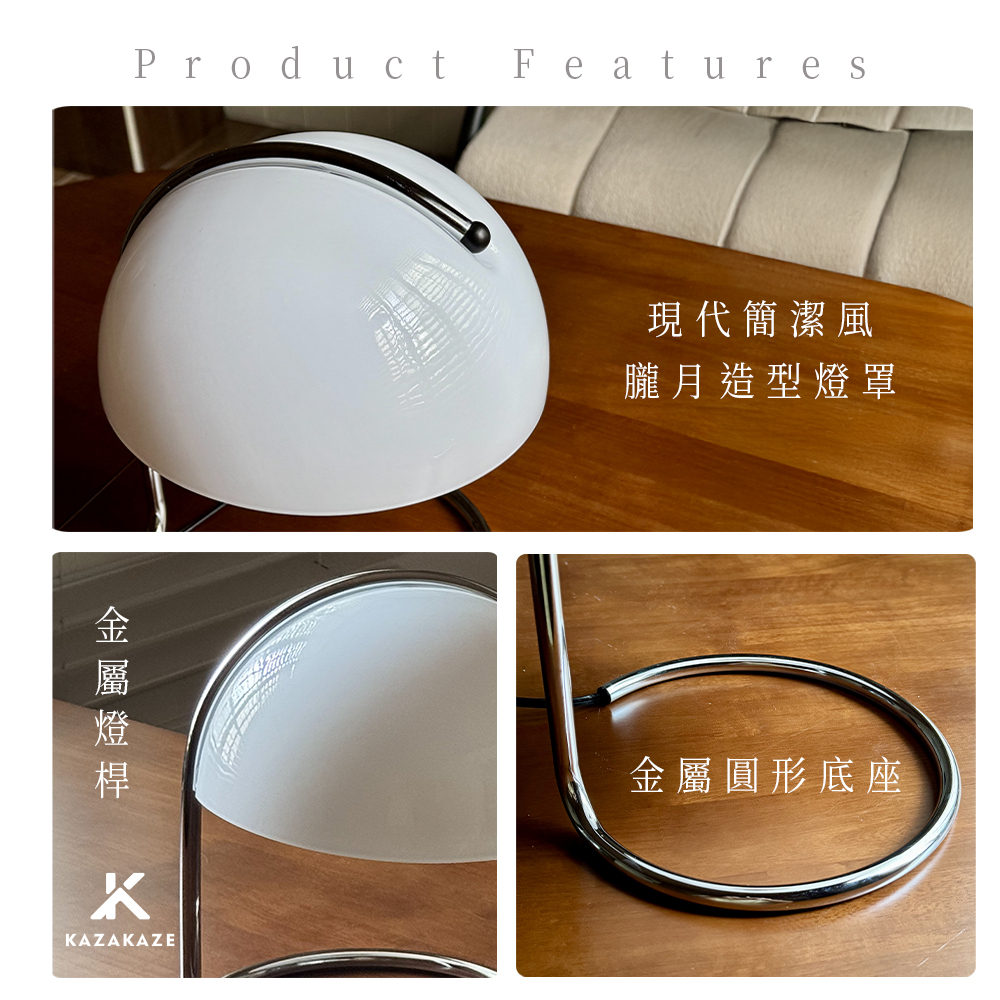 金屬弧形燈架:穩固結構,展現俐落線條感。