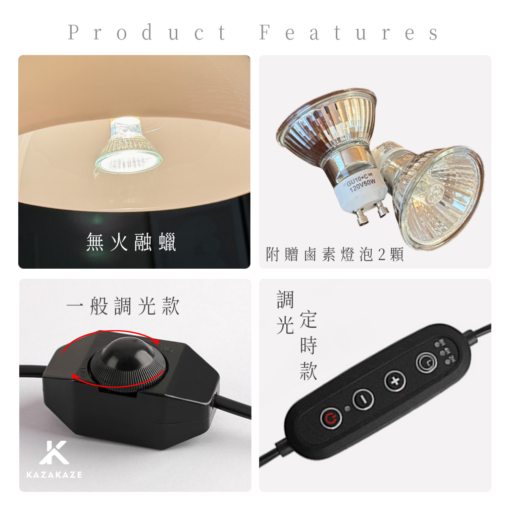 無火融蠟設計:以燈熱融化蠟燭,安全無煙。